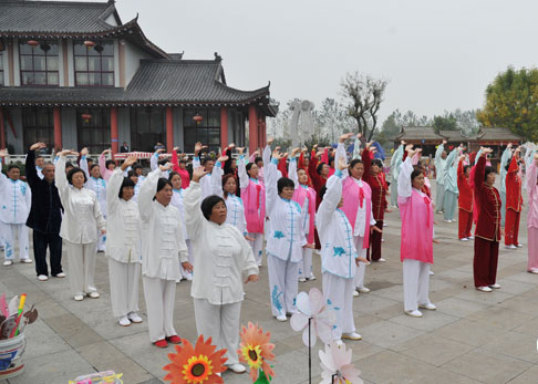 成立大会结束后,蒙阴县健身气功协会在海浪谷进行了全民健身气功优秀节目展演和比赛。 (图文/ 崮文化网讯 丁军国 )
