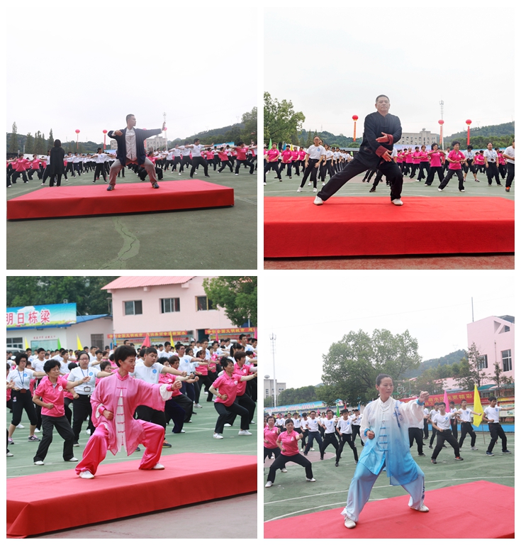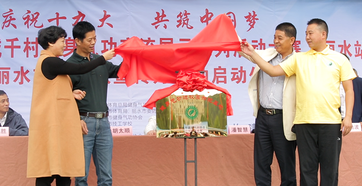 随后,由丽水市17个本级健身气功站点、技工学校习练健身气功的学生组成的1000名健身气功爱好者向现场观众展示了“八段锦”功法。各站点对健身气功·大舞、健身气功·导引养生功十二法等功法进行了展示 会上,授予丽水市技工学校为健身气功进校园示范基地,并举行揭牌仪式。